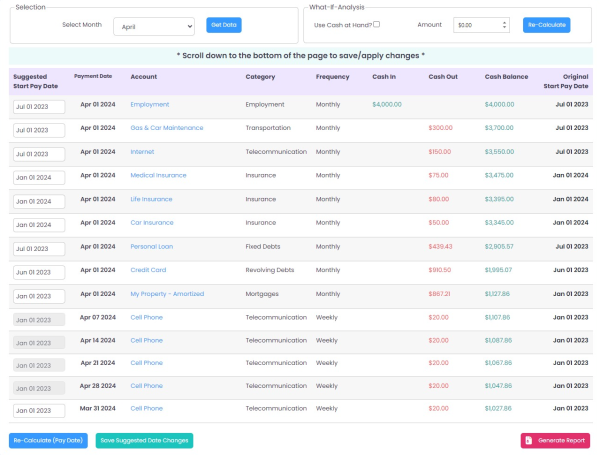 The Cash Flow Planner helps you manage your client's finances proactively to avoid overdrafts and maximize available cash flow.