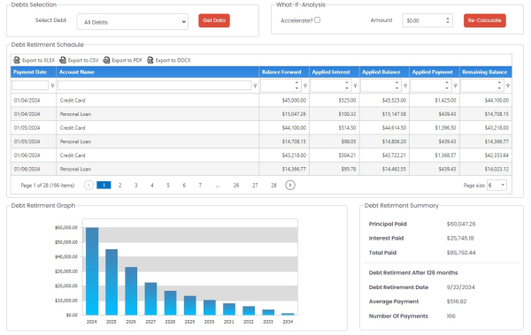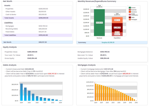 The Debt Analyzer helps you explore various debt elimination strategies to find the optimal path to financial freedom for each client.