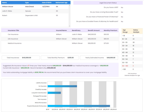 The Risk Analyzer helps you identify protection gaps and recommend appropriate insurance coverage tailored to each client's unique situation.